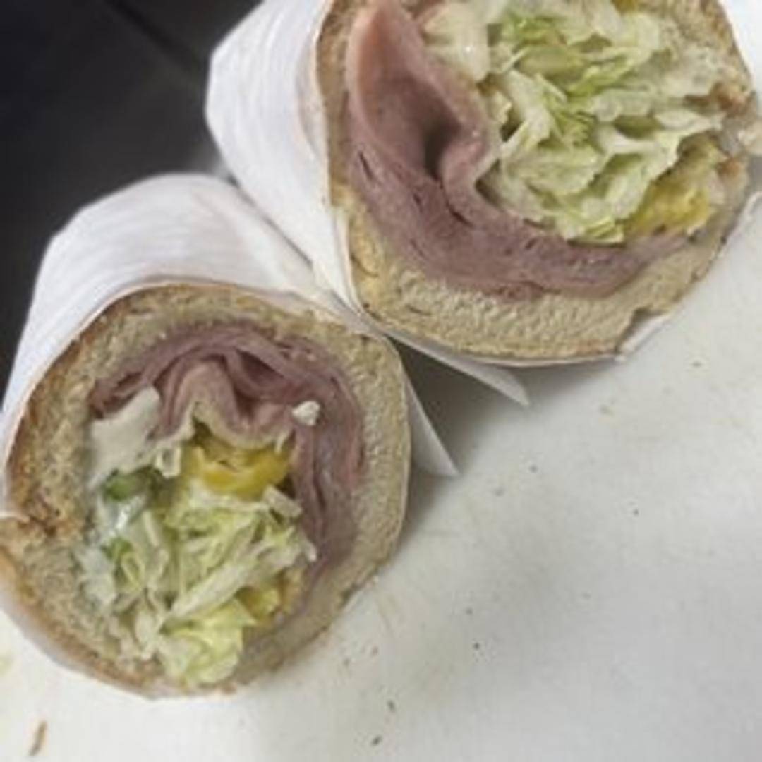 A hearty sub piled high with assorted Italian cold cuts, provolone cheese, lettuce, tomato, onion, and Italian dressing.