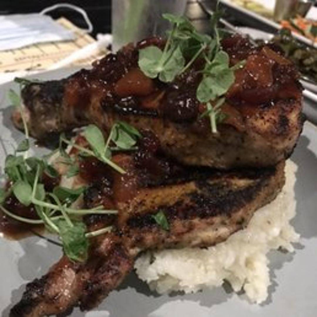 A tender, slow-smoked pork chop, seasoned with Valley Smoke's signature rub and grilled to perfection. Served with your choice of two sides.