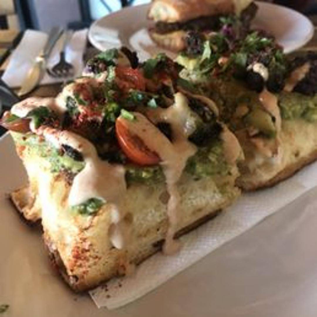 Val's Vegan Bakeshop's signature sandwich, featuring a unique blend of seasonal vegetables, house-made vegan cheese spread, and a flavorful pesto, served on warm, crusty bread. A true taste of what makes Vals special.