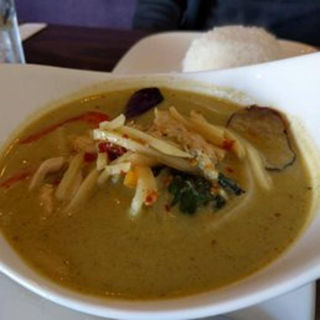 Tender pieces of chicken simmered in a rich and creamy Thai curry sauce, infused with aromatic herbs and spices. Served with your choice of rice. Can be prepared with red, green, or yellow curry paste.