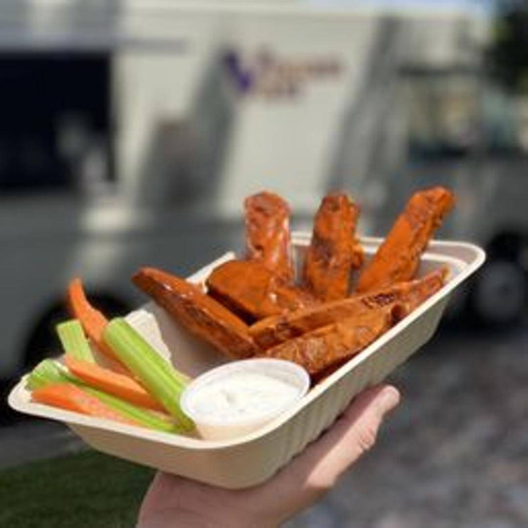 Crispy, battered seitan wings tossed in your choice of sauce: classic buffalo, sweet BBQ, or spicy teriyaki. Served with vegan ranch or blue cheese dressing.