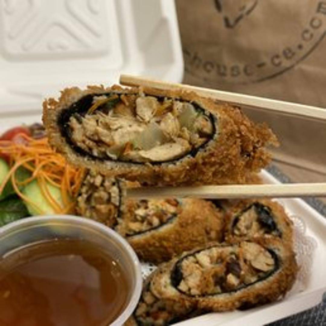 Delicate seaweed sheets filled with a savory mixture of glass noodles and vegetables, deep-fried to a golden crisp. Served with a sweet and sour dipping sauce.