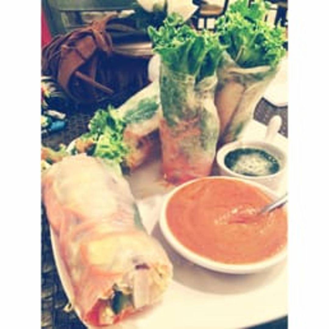 Fresh spring rolls filled with vermicelli noodles, crisp vegetables (such as lettuce, carrots, and cucumber), and herbs. Served with a peanut dipping sauce.