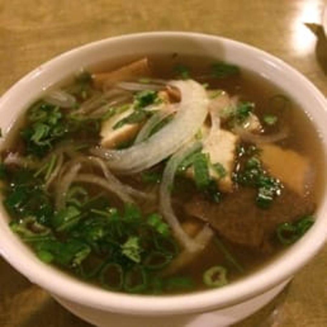 A hearty and comforting soup featuring tender slices of beef simmered in a savory broth with wheat noodles. May contain a variety of fresh vegetables, such as bok choy or green onions, enhancing both the flavor and texture.