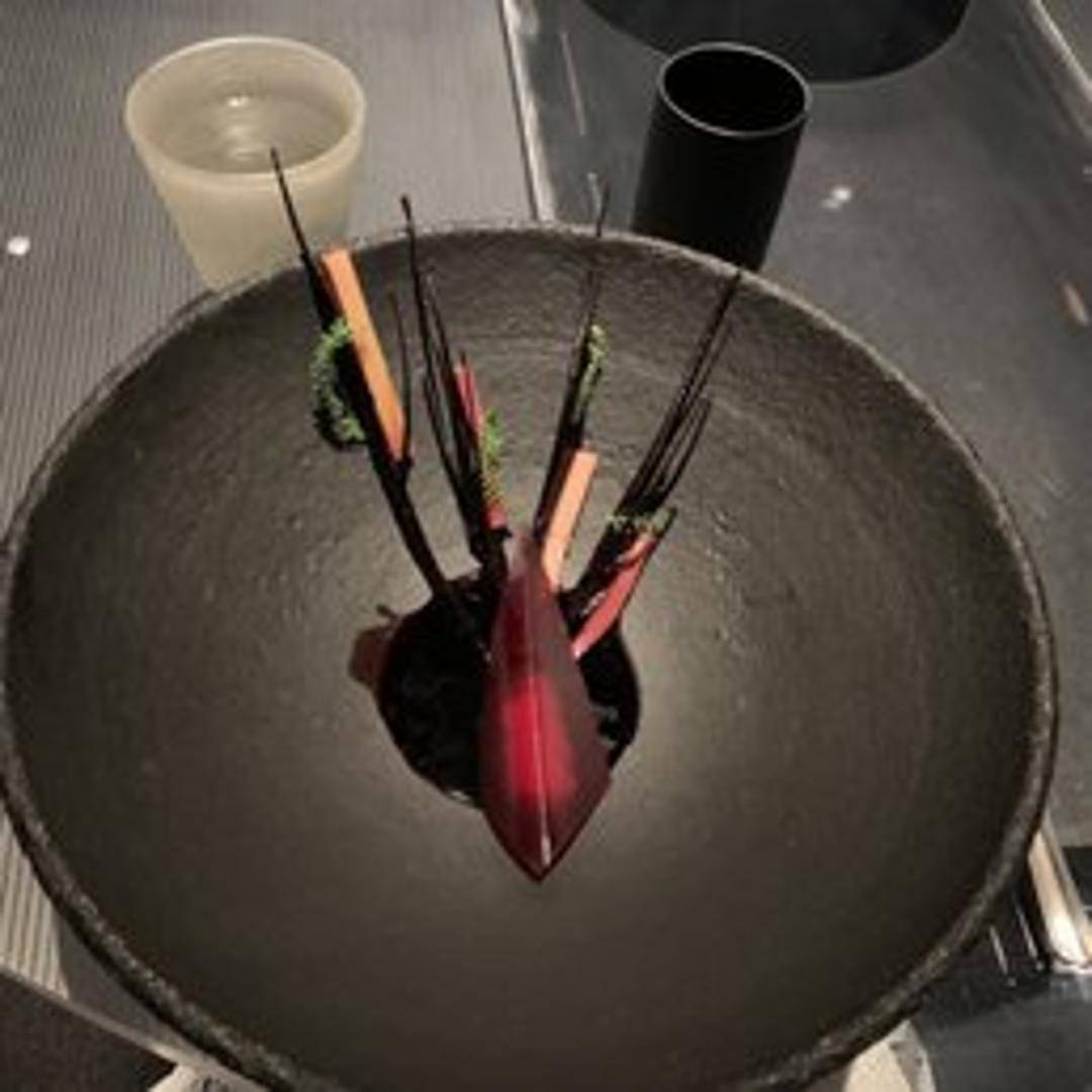 A dish centered around the black raspberry, highlighting its unique tartness and sweetness. Expect various preparations of the fruit, such as a puree, gel, sorbet, or fresh berries, combined with other elements that enhance its flavor profile, possibly including floral notes, herbs, or complementary textures.