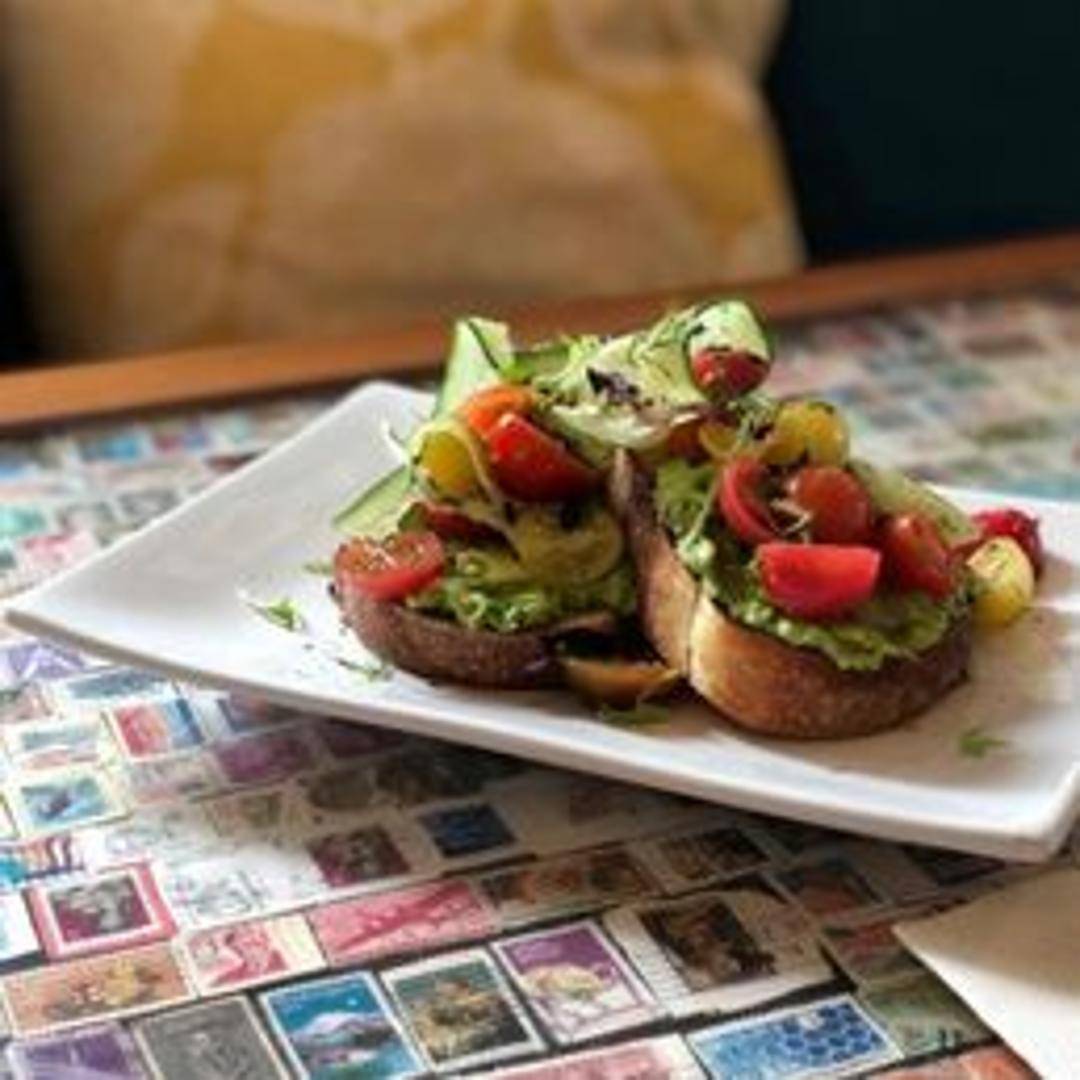 Thick-cut artisan bread, toasted to perfection and topped with creamy avocado, everything bagel seasoning, a sprinkle of red pepper flakes, and a drizzle of olive oil. Served with a side of fresh greens.