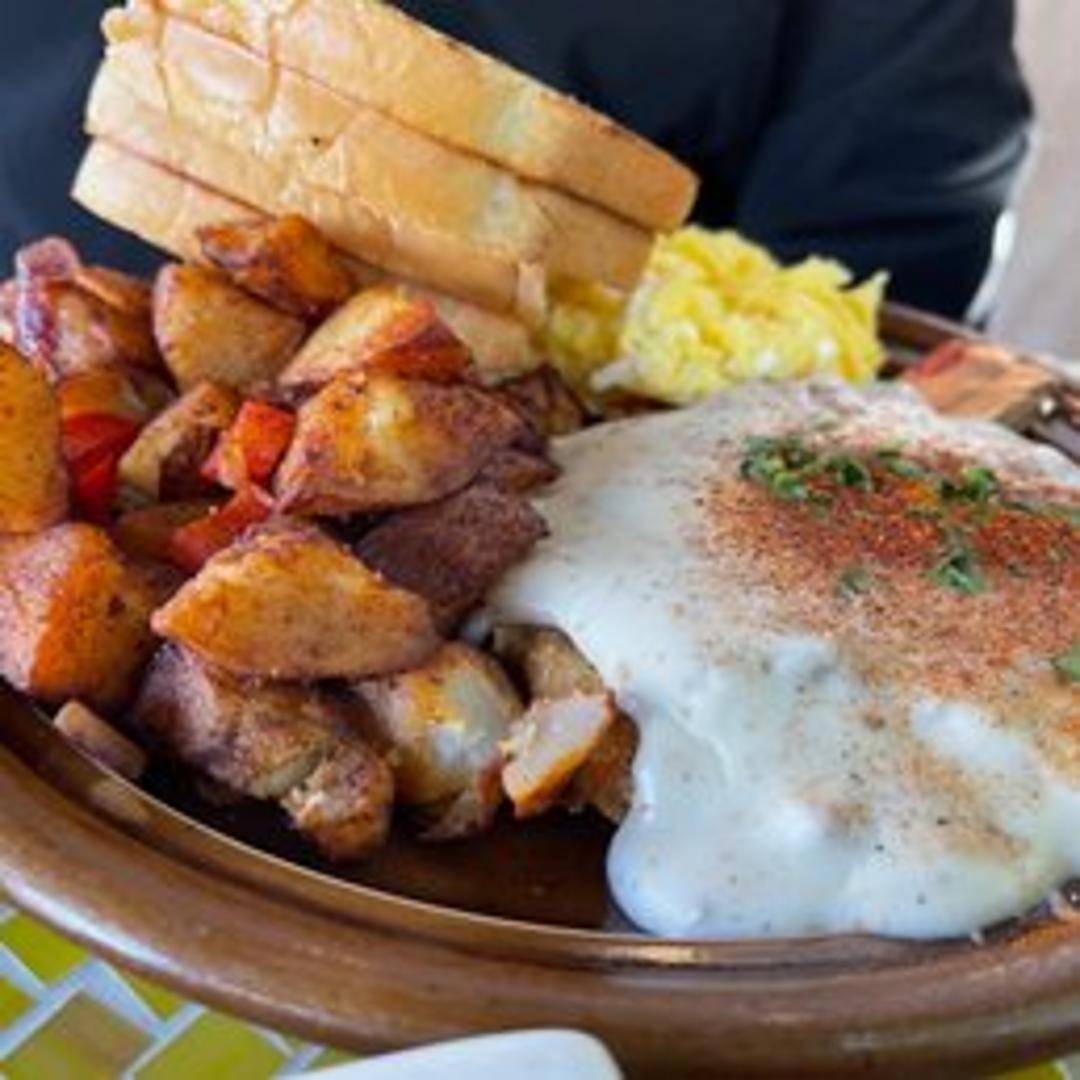 Tender, breaded steak, fried to a golden brown and smothered in creamy country gravy. Served with your choice of two sides.
