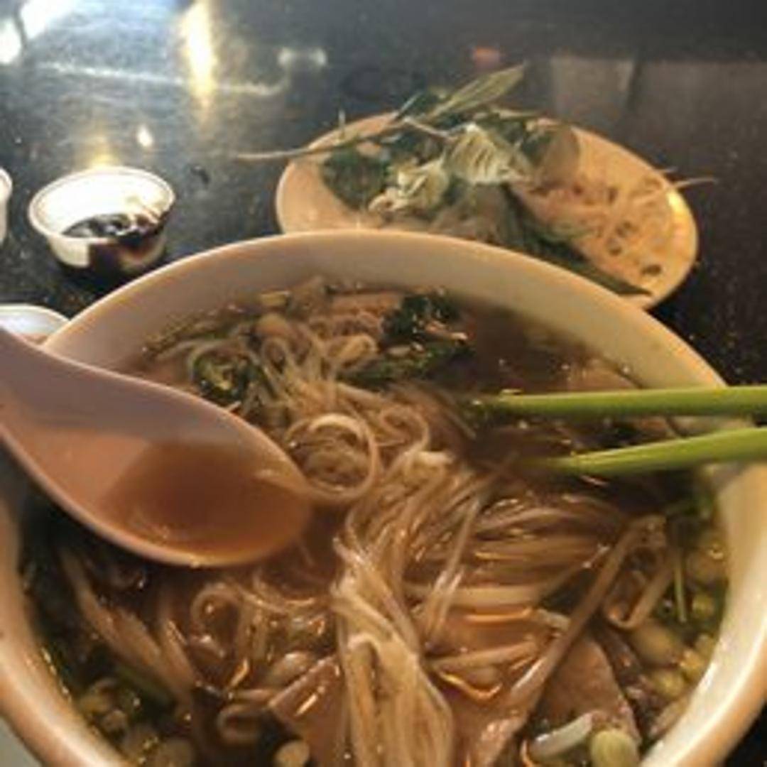 Experience a savory bowl of traditional Vietnamese pho featuring thinly sliced, tender skirt steak. This classic noodle soup is built on a rich, aromatic beef broth, served with slippery rice noodles and garnished with fresh herbs, bean sprouts, lime, and jalapeños.