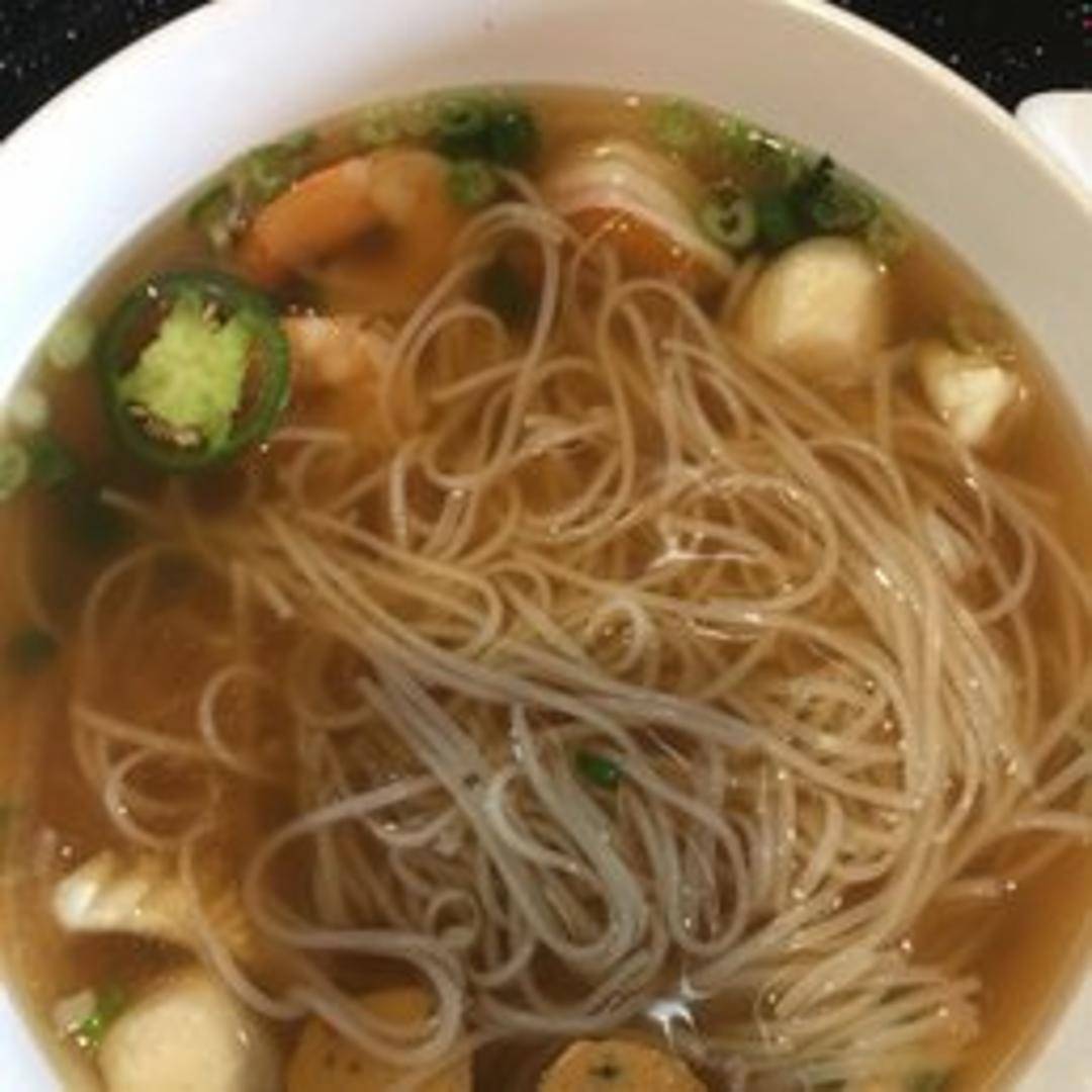 Explore a unique twist on the classic Vietnamese pho with our Seafood Pho. This comforting noodle soup features a rich, savory broth infused with the delicate flavors of the ocean, generously loaded with a fresh selection of shrimp, squid, and fish cakes. Served with traditional rice noodles and accompanied by a side of fresh herbs, bean sprouts, and lime for a light and refreshing culinary experience.