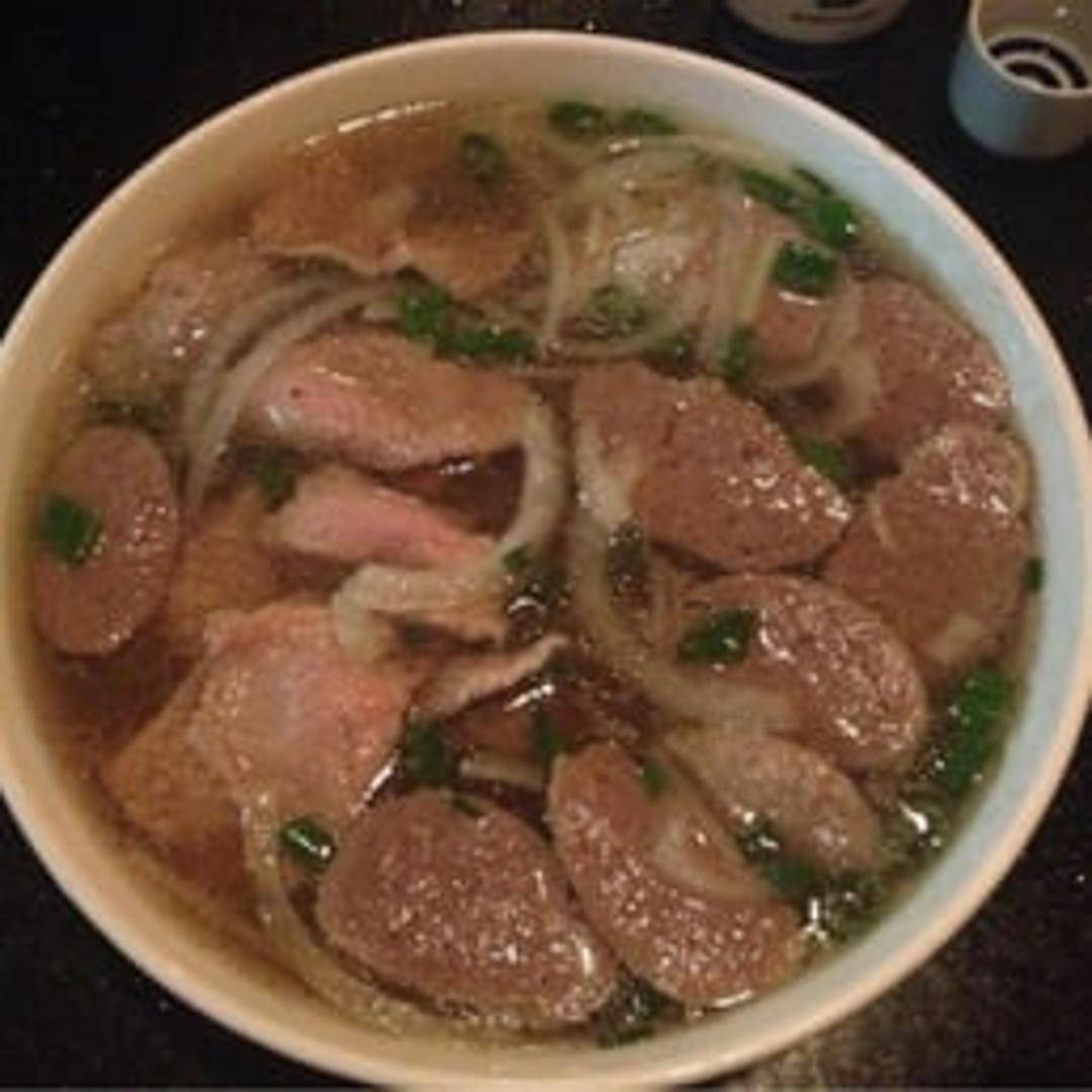 A traditional Vietnamese noodle soup featuring a flavorful beef broth, rice noodles, thinly sliced rare steak (typically eye round), and garnished with fresh herbs like cilantro, basil, bean sprouts, lime wedges, and jalapenos. Served hot for the steak to cook slightly in the broth.