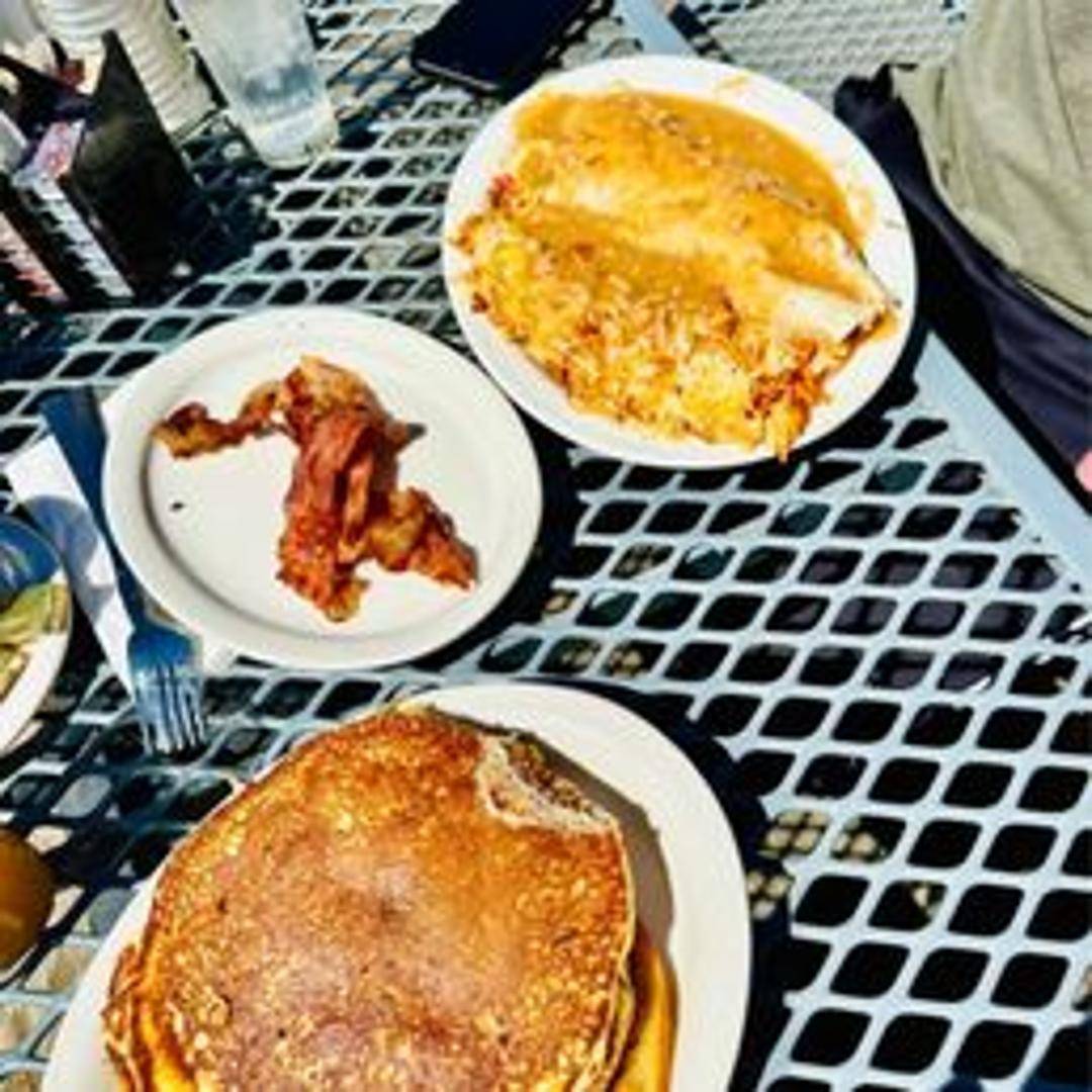 One small-sized pancake filled with blueberries, perfect for kids.