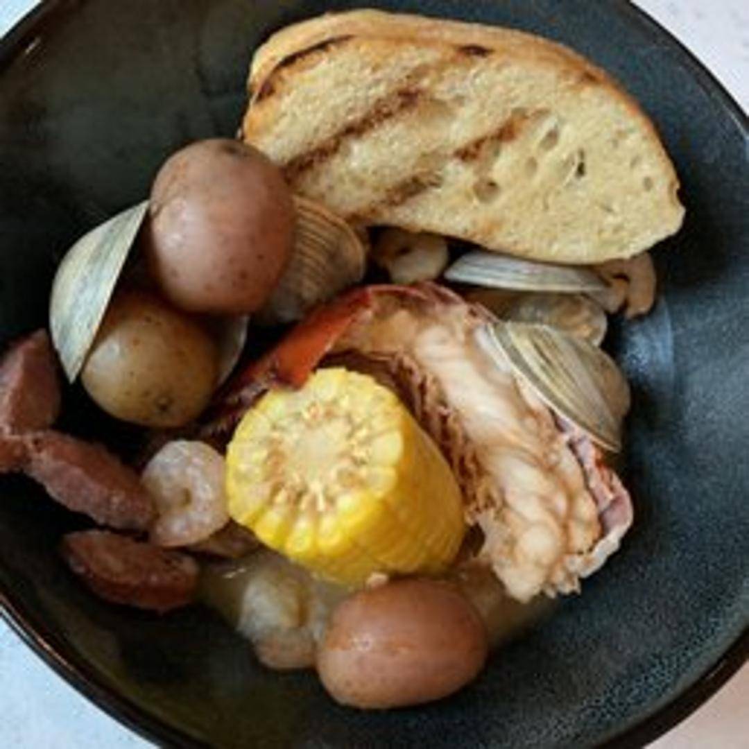 A coastal Carolina classic featuring a medley of shrimp, smoked sausage, corn on the cob, and potatoes, simmered in a flavorful broth and seasoned with Old Bay.