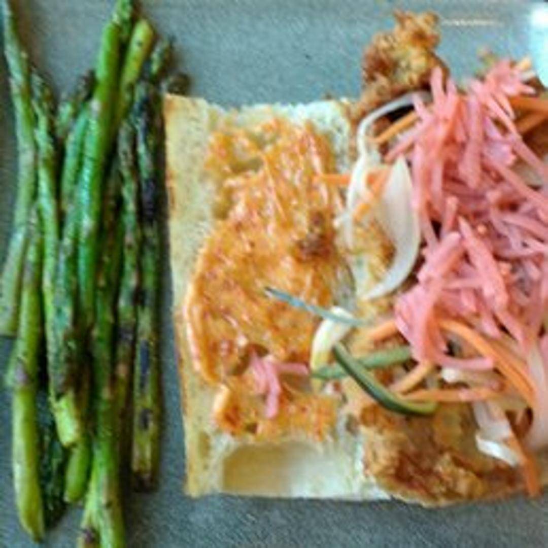 Tender asparagus spears, grilled to perfection, offering a smoky char and a slightly crisp texture. Seasoned with olive oil, salt, and pepper.