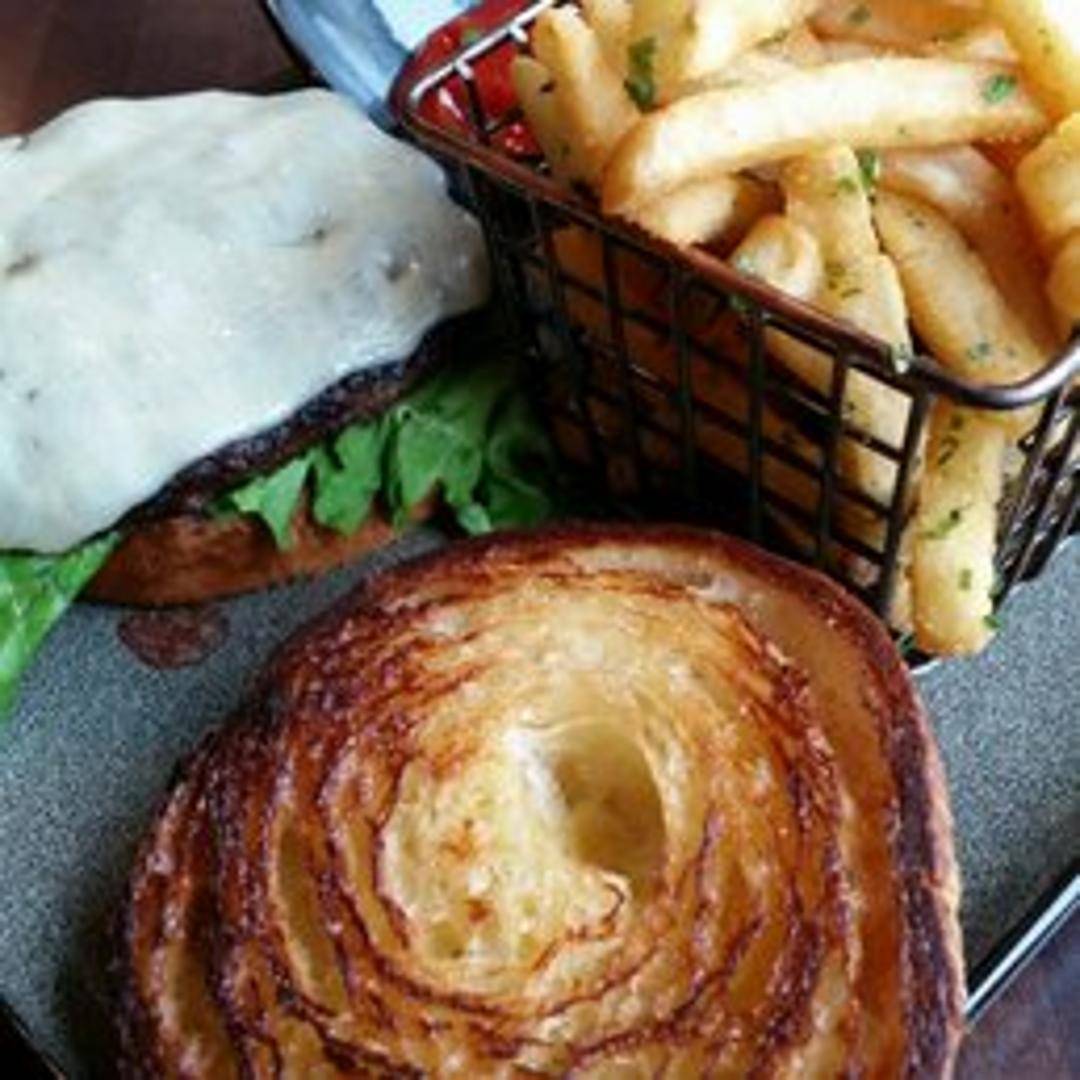 A flaky and buttery croissant baked in a bun shape, perfect for sandwiches or enjoying on its own. Offers a delightful combination of crispy layers and a soft interior.