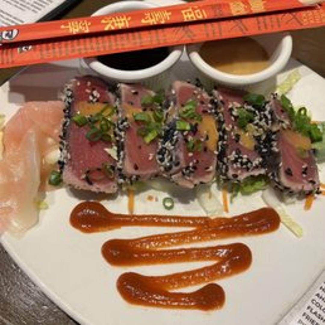 Fresh, thinly sliced Ahi tuna served raw, typically with soy sauce, wasabi, and ginger.