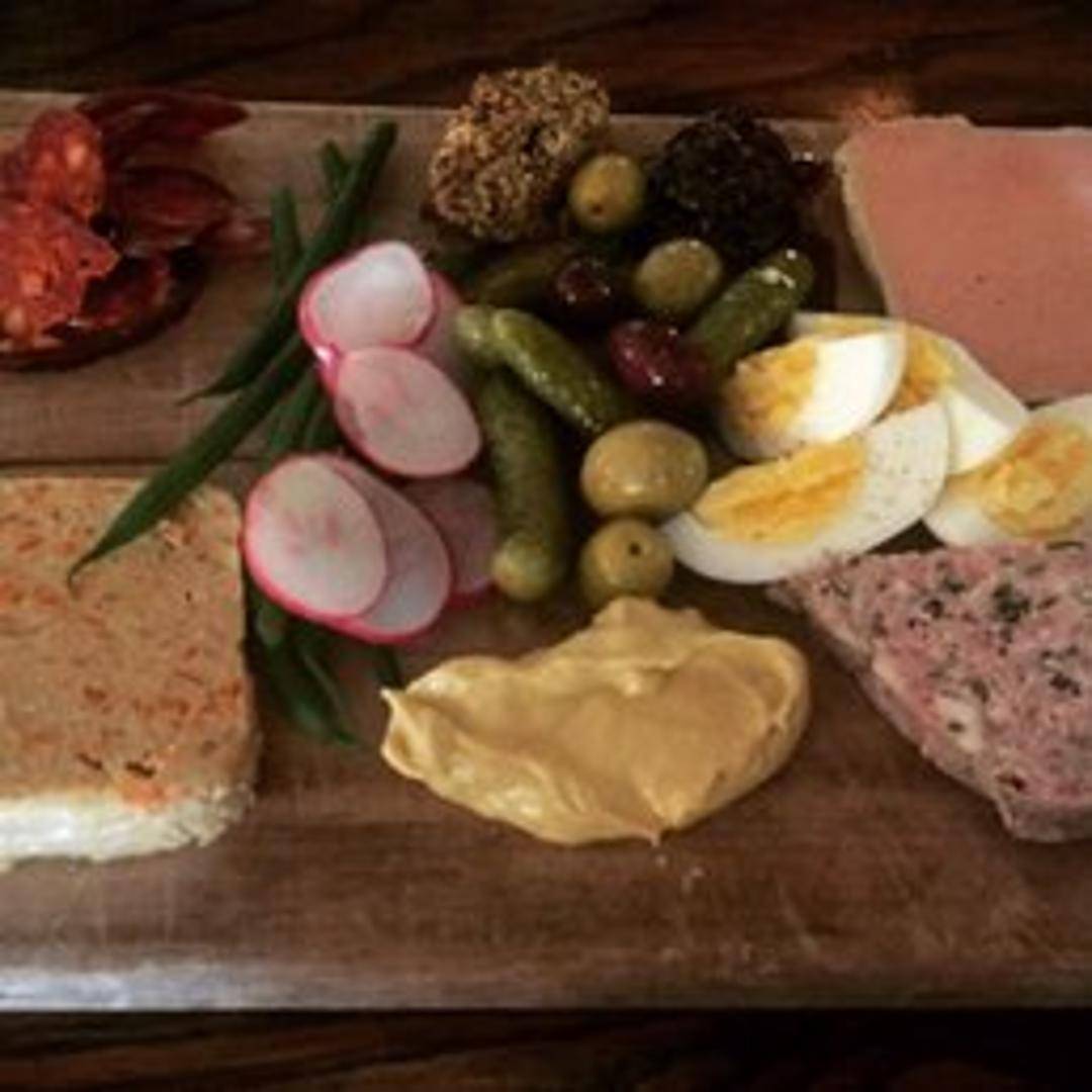 A quintessential French starter, our Charcuterie Plate features a curated selection of artisanal cured meats, rich pâtés, and savory terrines, thoughtfully paired with cornichons, whole grain mustard, and slices of crusty baguette for a delightful shared experience.