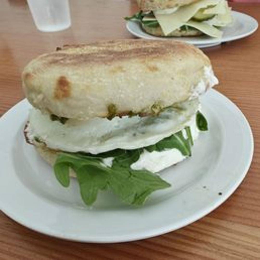 A savory sandwich featuring creamy goat cheese, roasted red peppers, and balsamic glaze. Served on freshly baked bread. A delightful combination of tangy and sweet flavors.