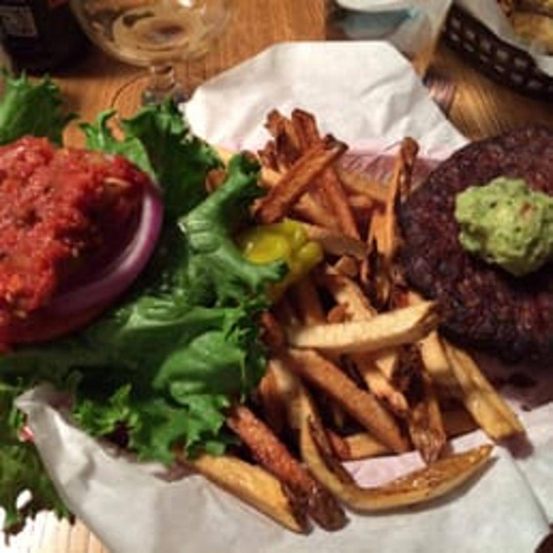 A flavorful black bean patty topped with lettuce, tomato, onion, and your choice of condiments on a toasted bun. Vegan option available.