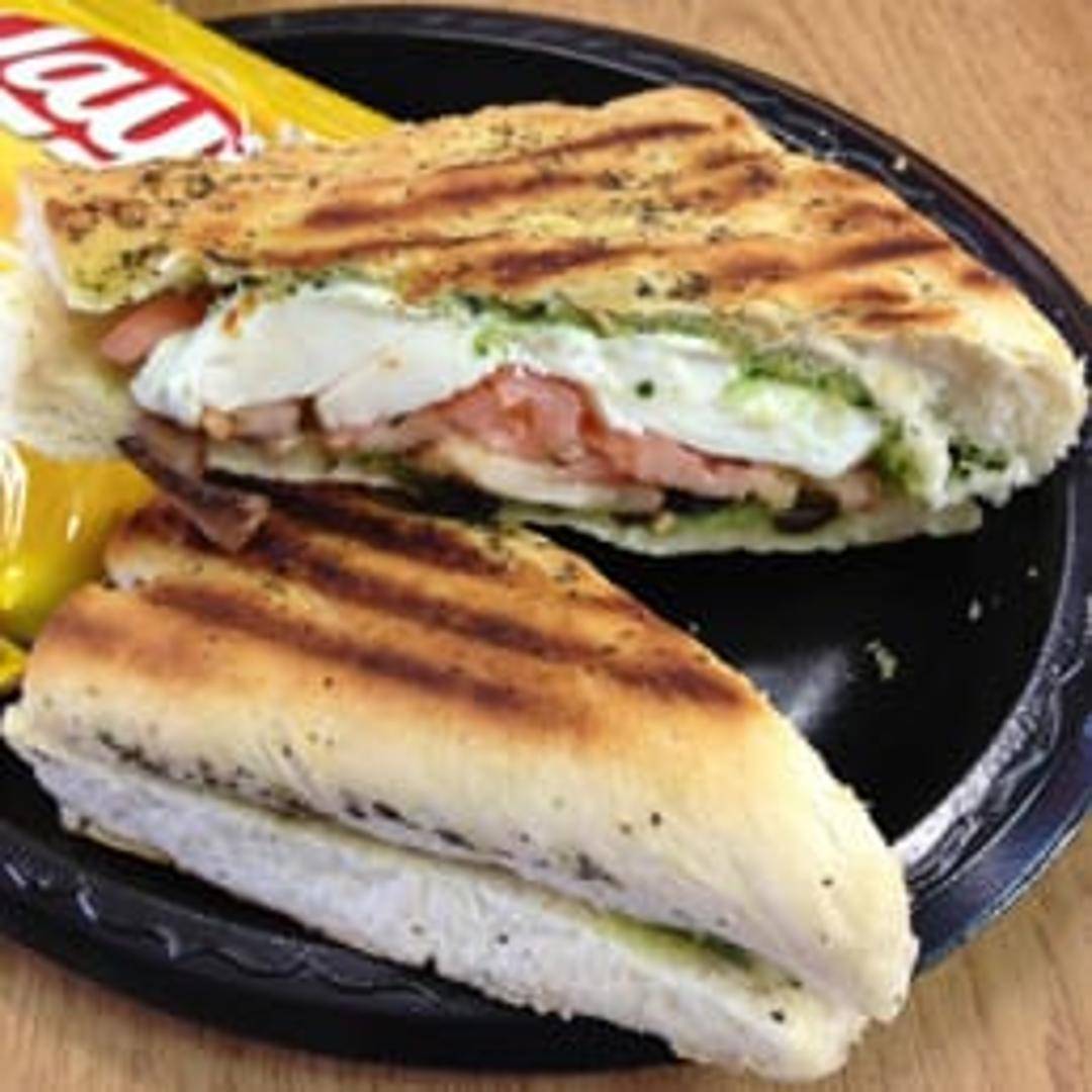Grilled panini bread filled with a medley of fresh, seasonal vegetables. Typically includes roasted red peppers, zucchini, eggplant, spinach, and artichoke hearts, layered with provolone cheese and a balsamic glaze. Served warm.