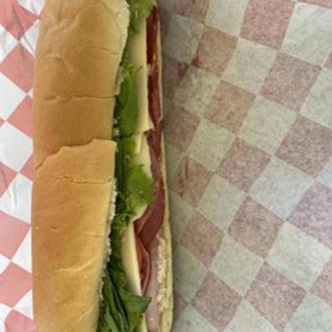 A hearty sub sandwich layered with assorted Italian deli meats such as salami, capicola, and mortadella. Includes provolone cheese, lettuce, tomato, onion, and a tangy vinaigrette dressing. Served on a crusty Italian roll.