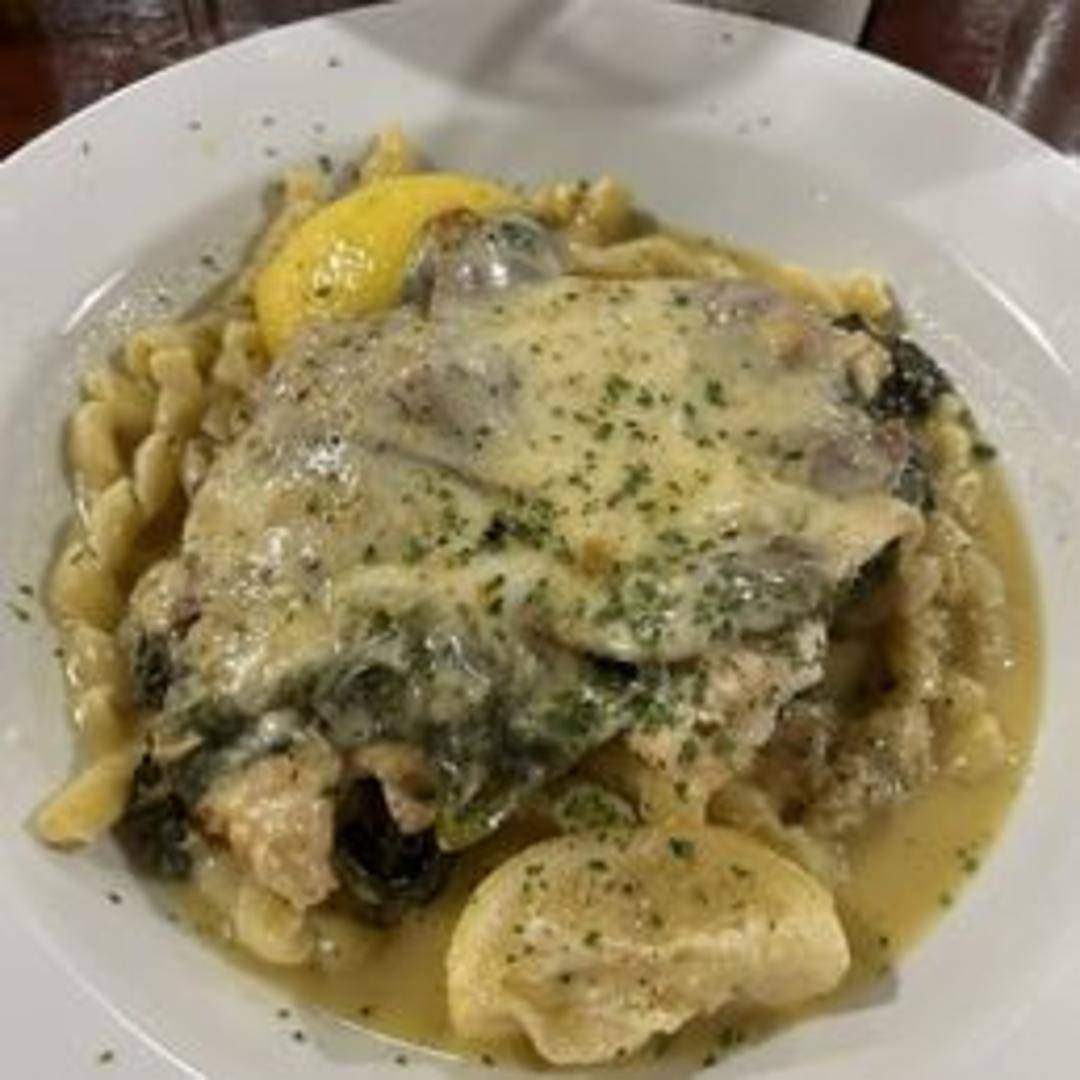 Thinly pounded chicken breast, stuffed with prosciutto, provolone, and herbs, rolled and braised in a rich marinara sauce. Served with your choice of pasta or vegetable.