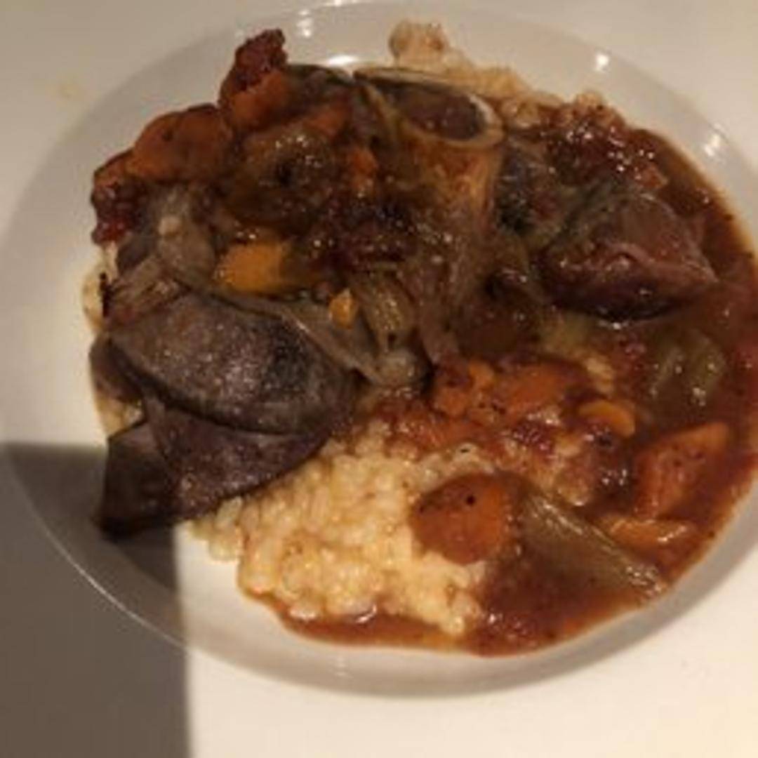 Braised veal shanks, slow-cooked until fork-tender in a flavorful broth of white wine, vegetables, and herbs. Served with creamy risotto Milanese.