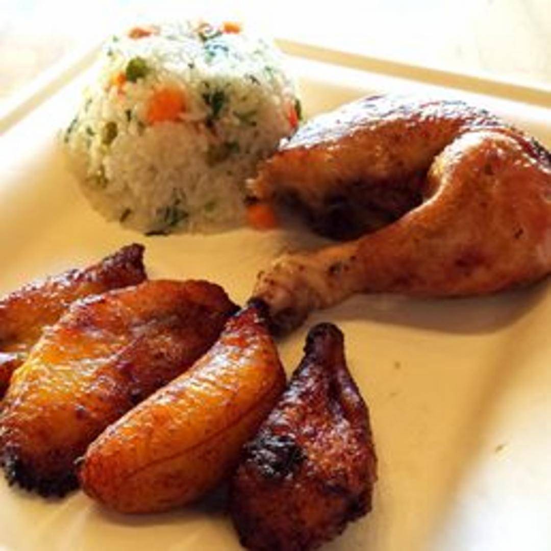 A vibrant and aromatic side dish featuring perfectly cooked rice, subtly infused with fresh cilantro. This fluffy and flavorful rice provides a fragrant complement, adding a touch of Peruvian essence to your meal.