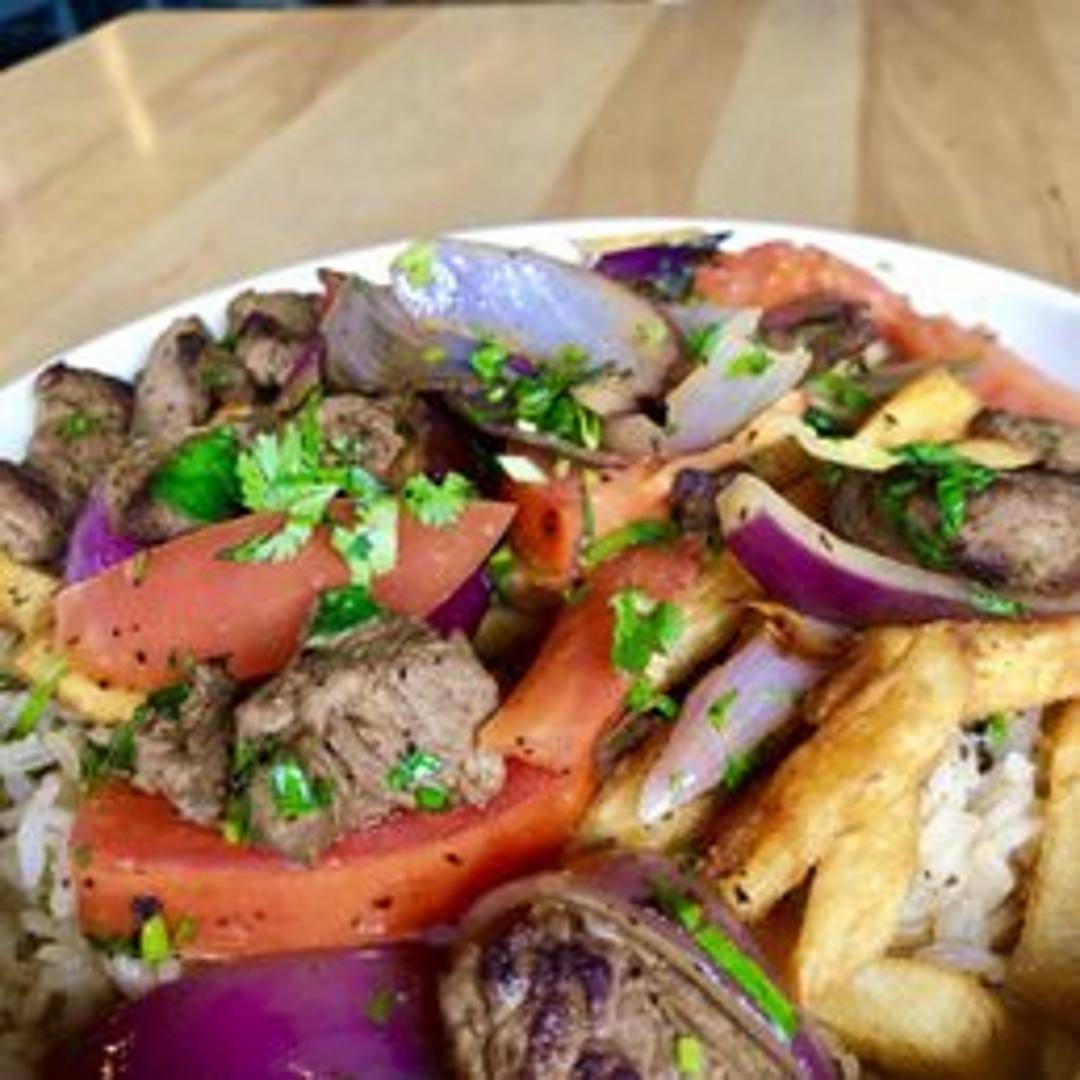 Savor the iconic flavors of Peru with our Classic Saltado, a robust and savory stir-fry. Tender strips of marinated sirloin steak are wok-fried with vibrant red onions, ripe tomatoes, and a medley of aromatic spices, creating a rich and savory gravy. This hearty dish is traditionally served over a bed of crispy golden French fries, accompanied by fluffy white rice, offering a harmonious blend of textures and an explosion of umami in every bite.