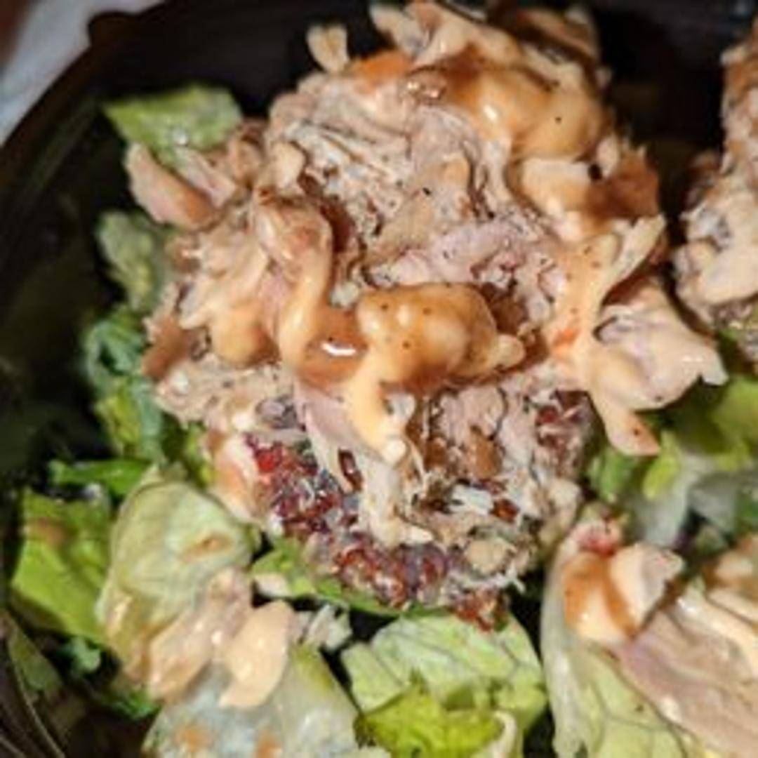 Our succulent pulled chicken is crafted from our signature rotisserie chicken, slow-cooked until incredibly tender and then expertly shredded. This flavorful and versatile protein is infused with a blend of savory seasonings, perfect for adding to bowls, salads, or enjoying as a standalone delight.
