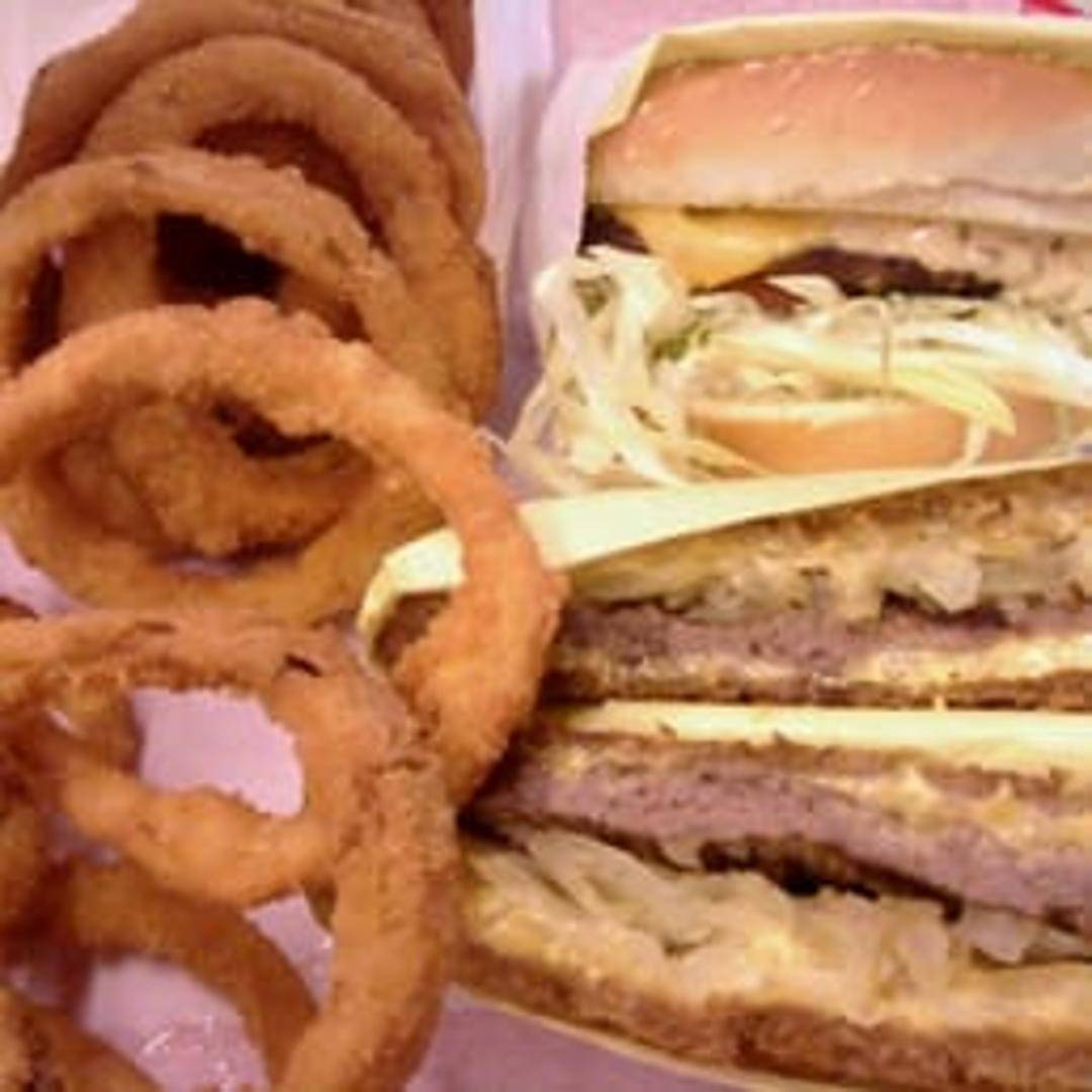 Grilled rye bread loaded with a juicy beef patty, melted Swiss cheese, and caramelized onions. Served with your choice of side.