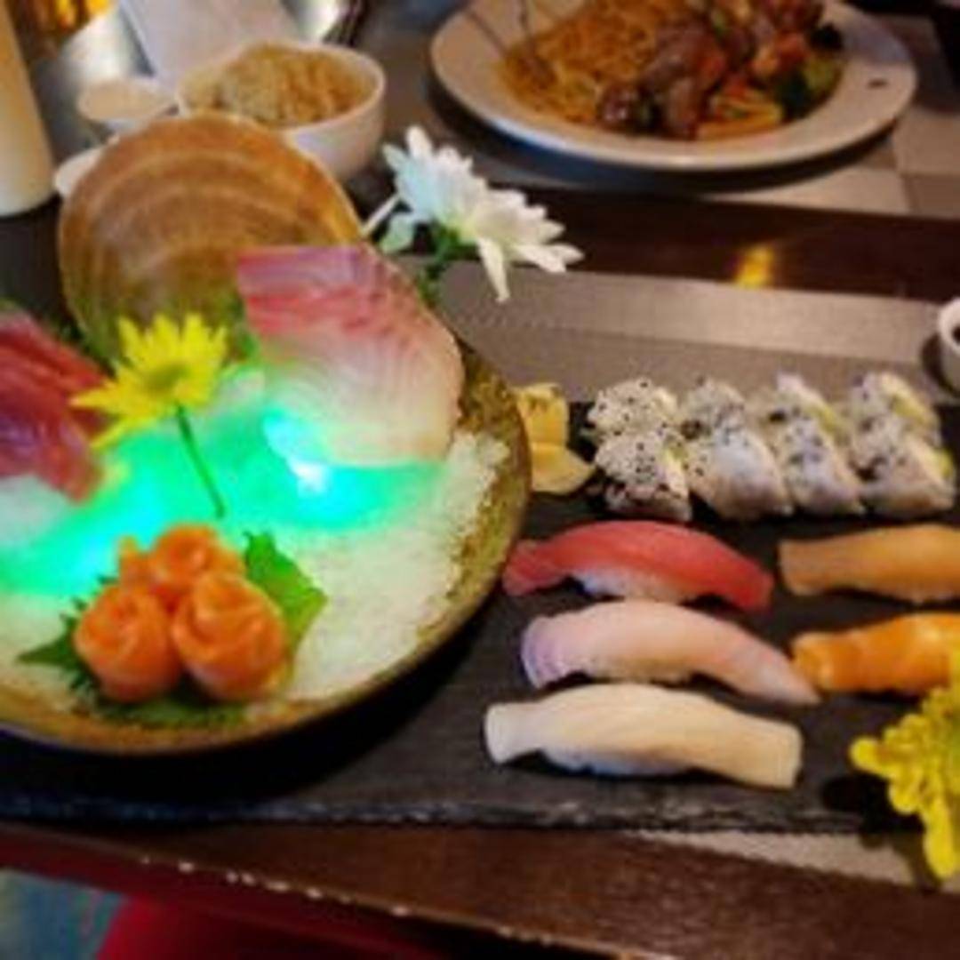 A selection of fresh, expertly prepared sushi and sashimi featuring a variety of fish and seafood. Includes nigiri, maki, and thinly sliced raw fish, showcasing the natural flavors and textures of the ocean.