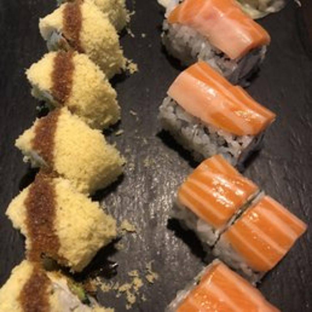 A specialty sushi roll showcasing a unique blend of tastes and textures. May contain ingredients like tuna, salmon, yellowtail, and avocado, carefully rolled with sushi rice and nori. Expect a creative topping or sauce that enhances the overall flavor profile, perhaps with a spicy or creamy element.