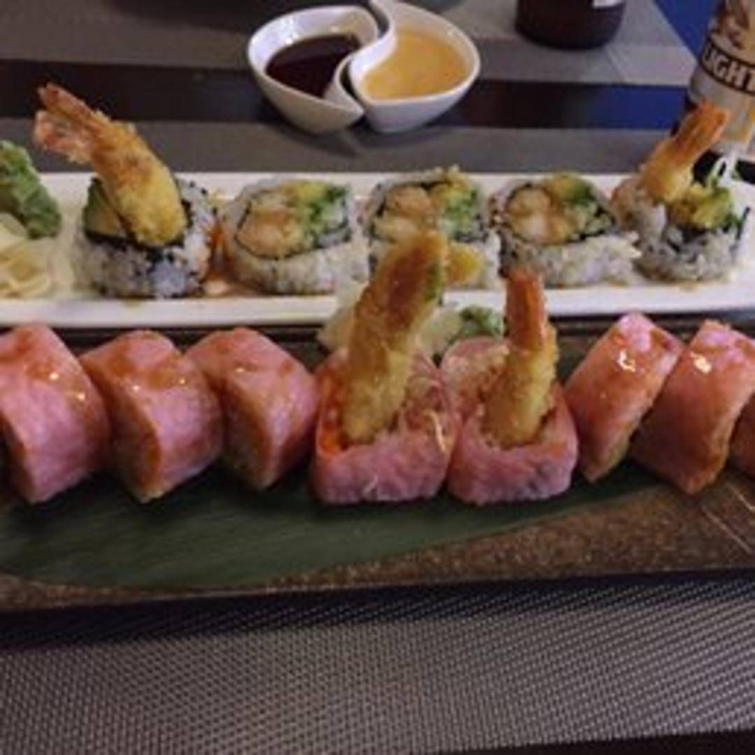 Crispy, golden-brown shrimp tempura rolled inside out with sushi rice and seaweed. Typically includes avocado, cucumber, or both. Served with a dipping sauce, often a sweet and savory tempura sauce.