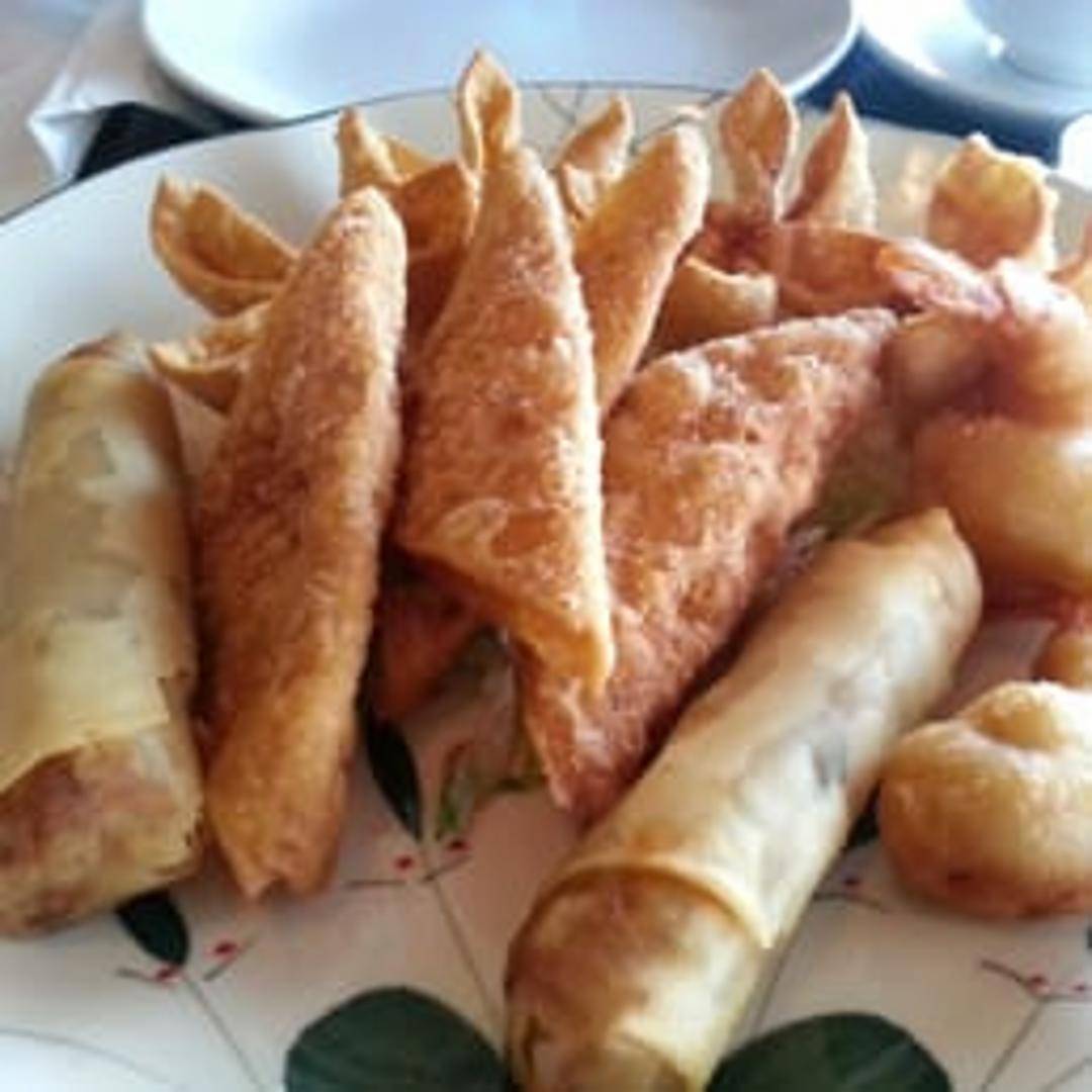 Crispy, golden-brown wontons filled with a savory meat and vegetable mixture. Served with a side of sweet and sour sauce for dipping.