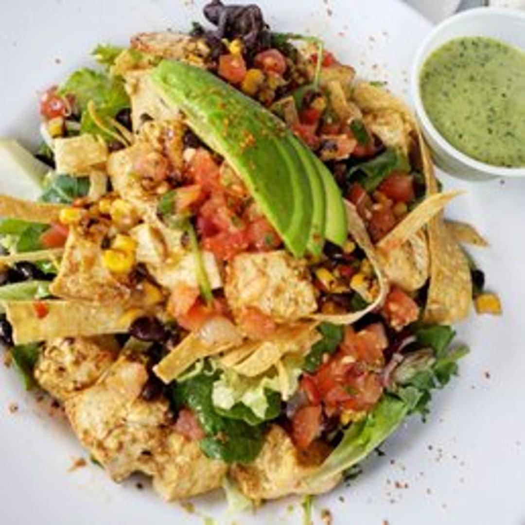 Chopped kale mixed with quinoa, avocado, tomatoes, corn, black beans, and a tangy citrus vinaigrette. Add your choice of protein for an additional charge.