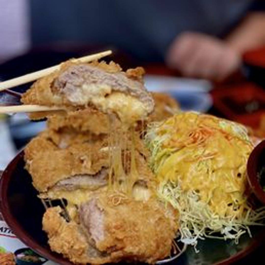 A deep-fried cutlet filled with melted cheese. Encased in a crispy panko breadcrumb crust, the interior features a generous portion of gooey, savory cheese. Served piping hot.