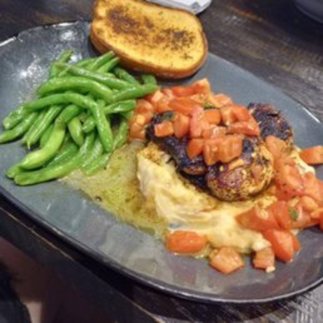 Grilled chicken breast topped with a creamy sun-dried tomato sauce, artichoke hearts, and Parmesan cheese. Served with your choice of two sides.