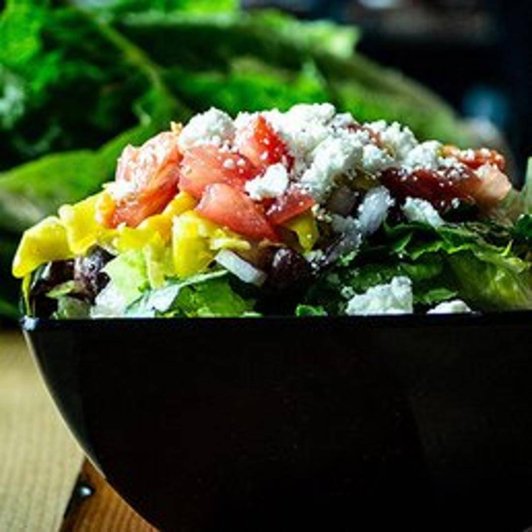 Mixed greens, tomatoes, cucumbers, red onion, Kalamata olives, feta cheese, and Greek vinaigrette.