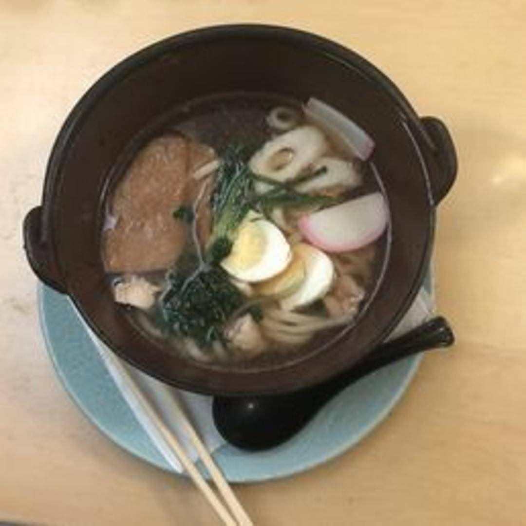 A comforting and hearty Japanese soup featuring thick, springy udon noodles served in a savory, often dashi-based, broth. This warming dish is traditionally garnished with an assortment of toppings, which may include thinly sliced scallions, crispy tempura pieces, kamaboko (fish cake), or tender slices of meat or vegetables, creating a fulfilling meal.