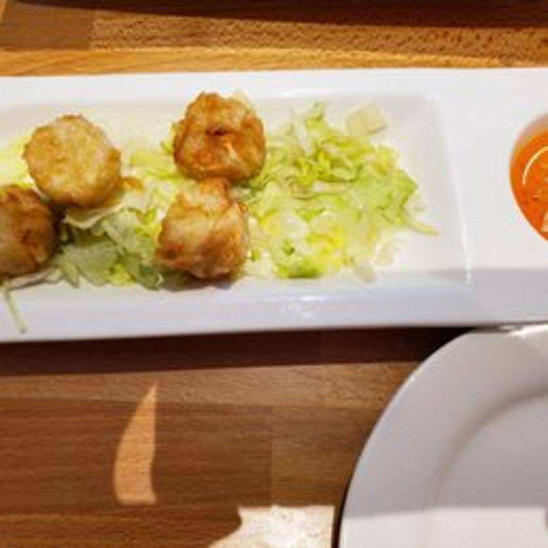 Delicate and savory Japanese steamed dumplings, typically filled with a succulent mixture of ground pork or shrimp, sometimes a combination of both. These tender parcels are encased in thin, pliable wrappers and are a popular appetizer or side dish, often served with a light dipping sauce.
