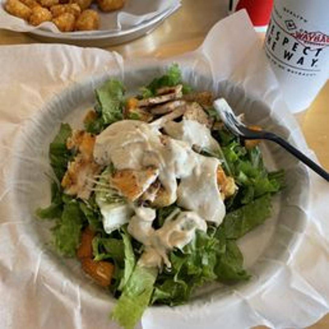 Crisp Romaine lettuce tossed in creamy Caesar dressing, topped with Parmesan cheese and croutons. Add grilled or crispy chicken for an additional charge.