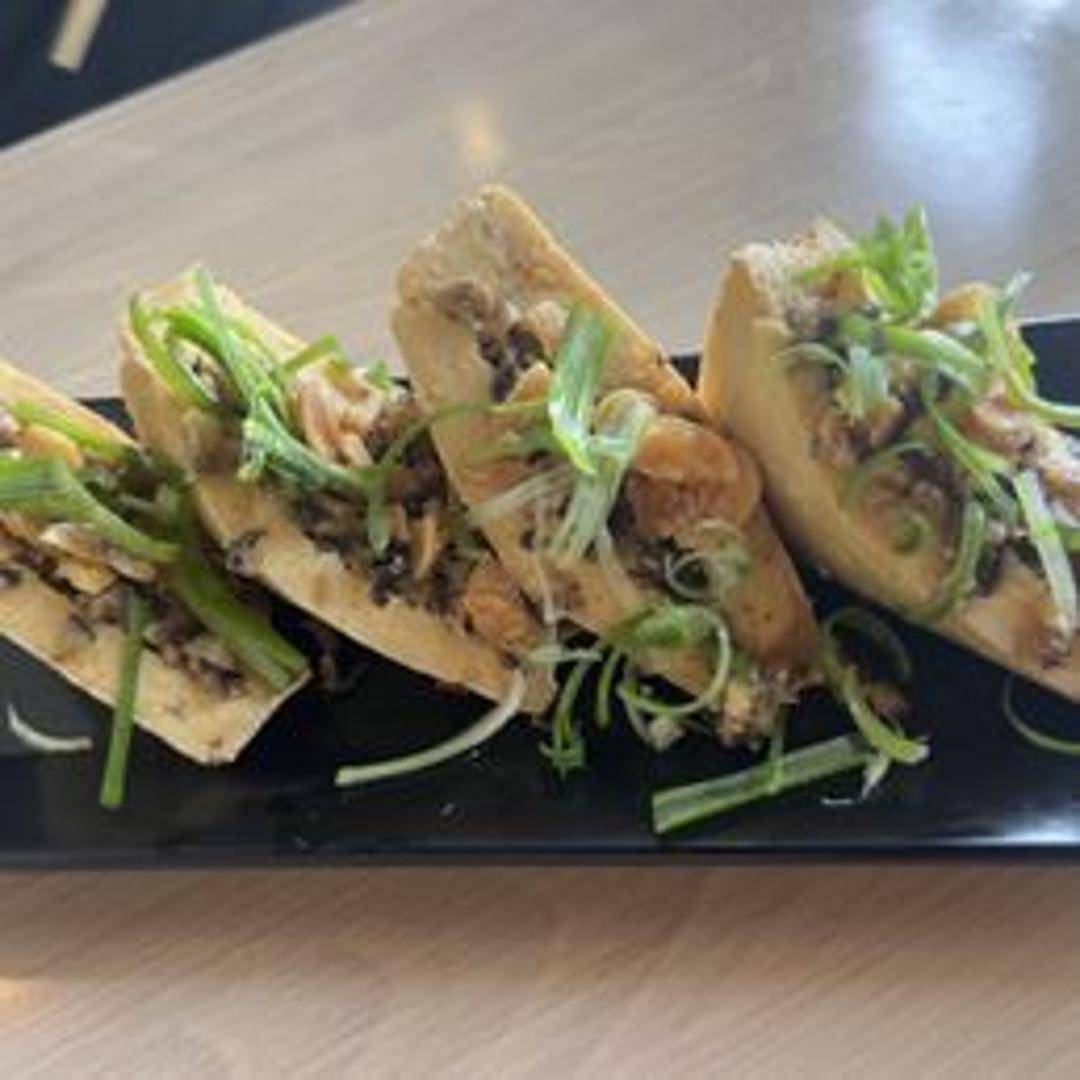 A vegetarian-friendly rice ball filled with seasoned and fried organic tofu, wrapped in nori seaweed.