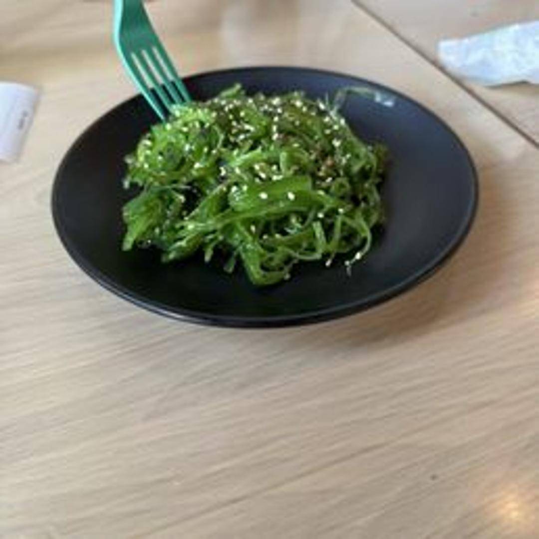 A refreshing and healthy salad featuring a mix of marinated seaweed, sesame seeds, and a light vinaigrette dressing.