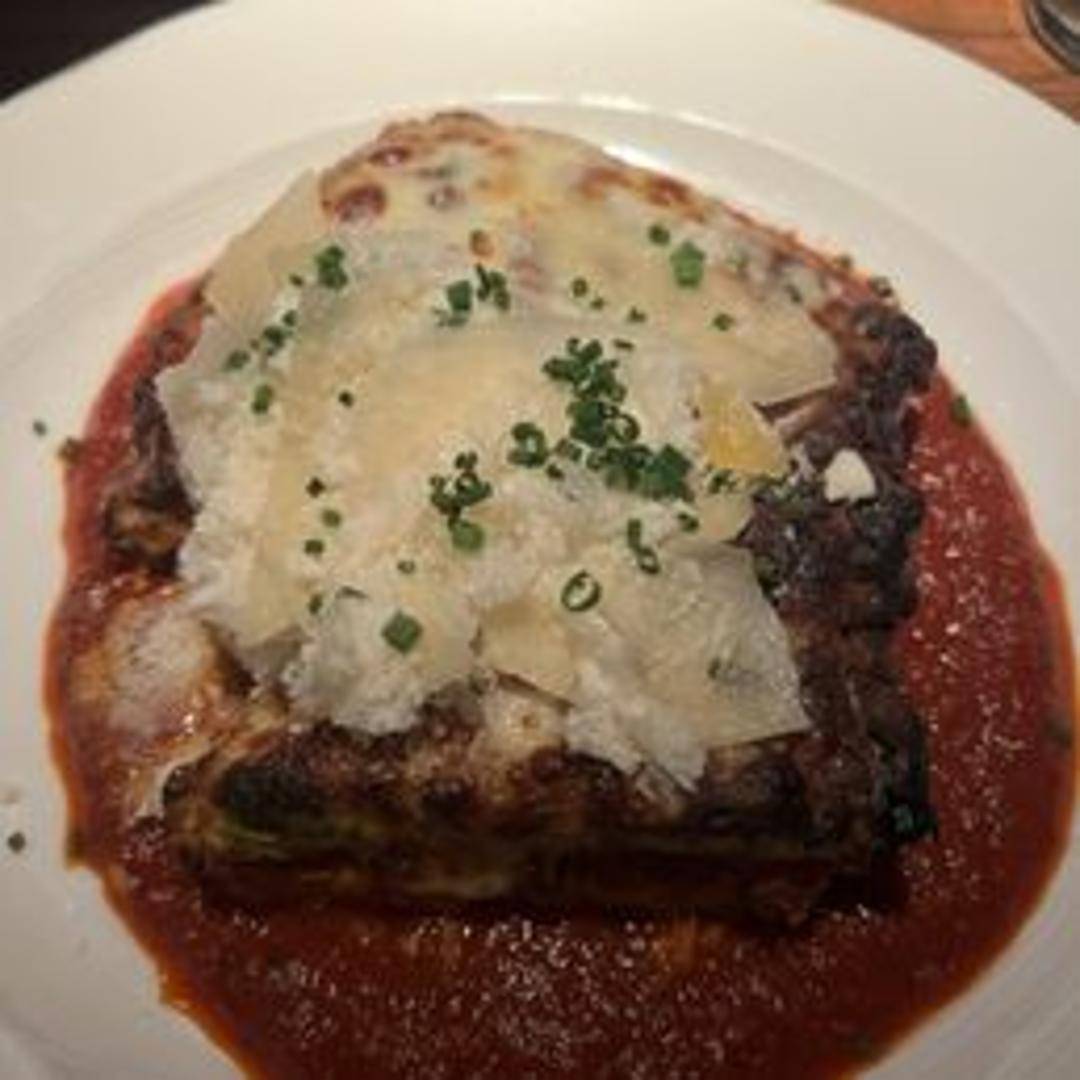 A vegetarian lasagna featuring layers of pasta, ratatouille vegetables, ricotta cheese, and marinara sauce. A hearty and flavorful dish.
