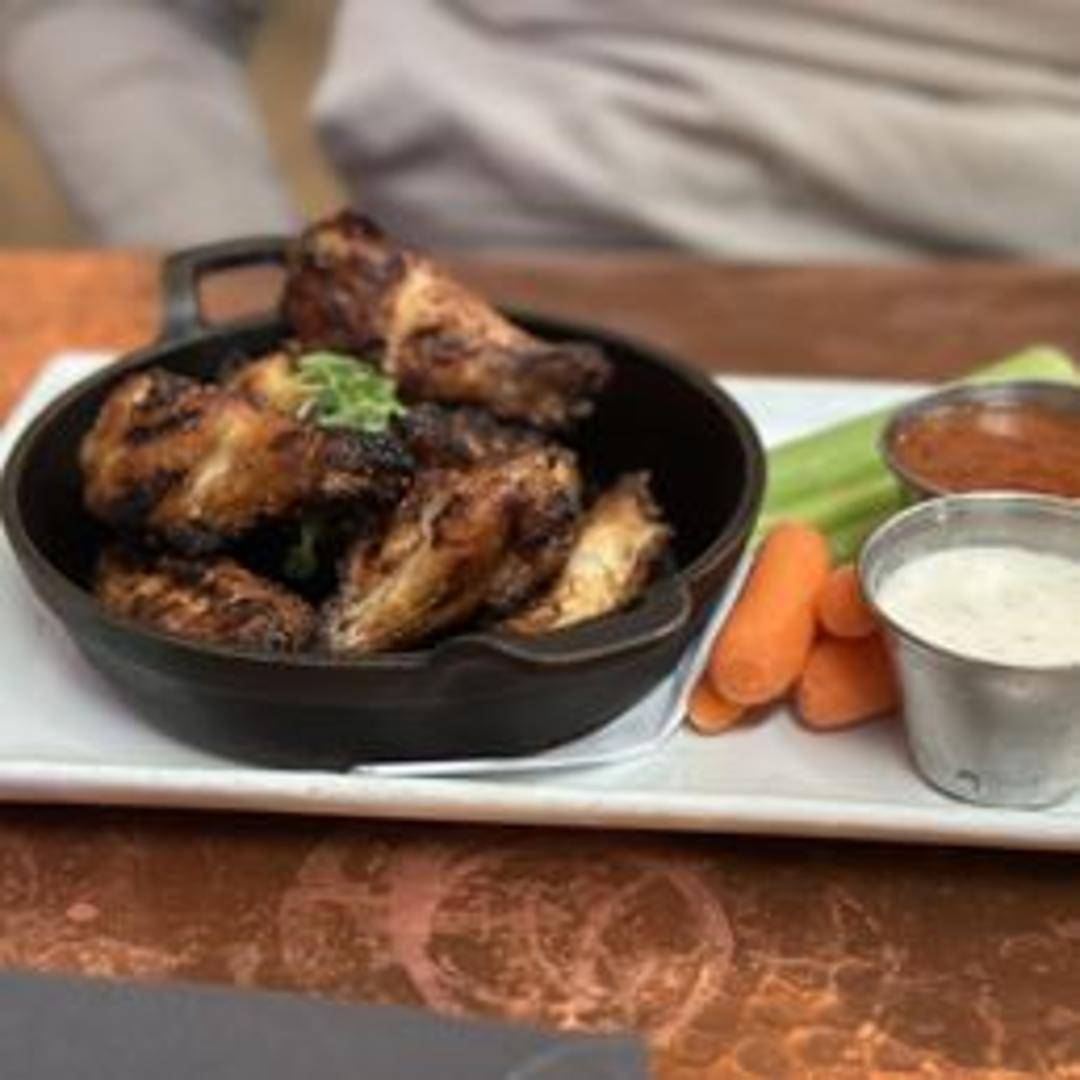 Smoked and grilled chicken wings tossed in a tangy BBQ sauce. Served with celery and a side of ranch or blue cheese dressing.