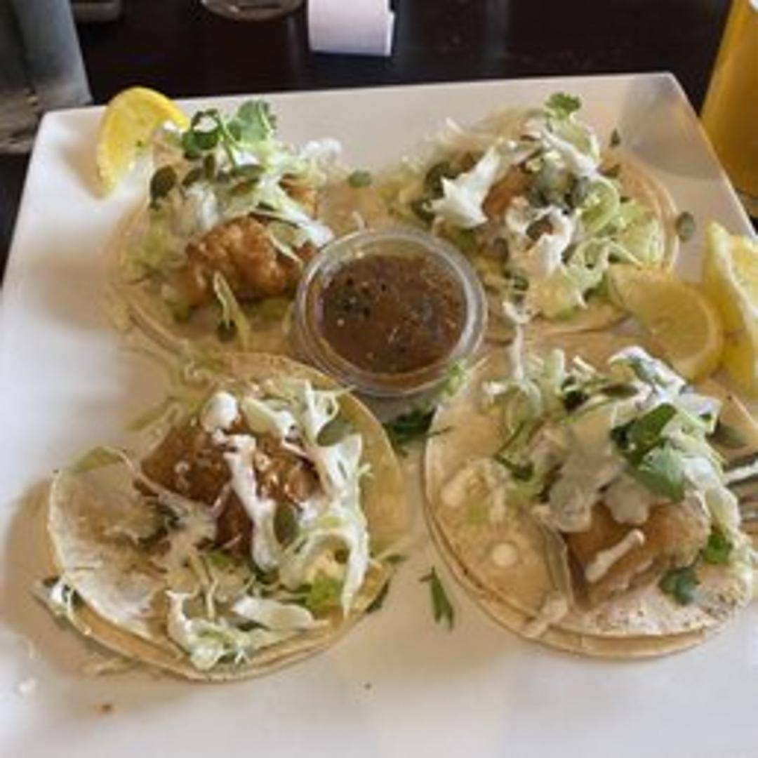 Three corn tortillas filled with your choice of protein (carnitas, carne asada, or chicken), topped with cilantro, onions, and salsa verde. Served with a side of lime wedges.