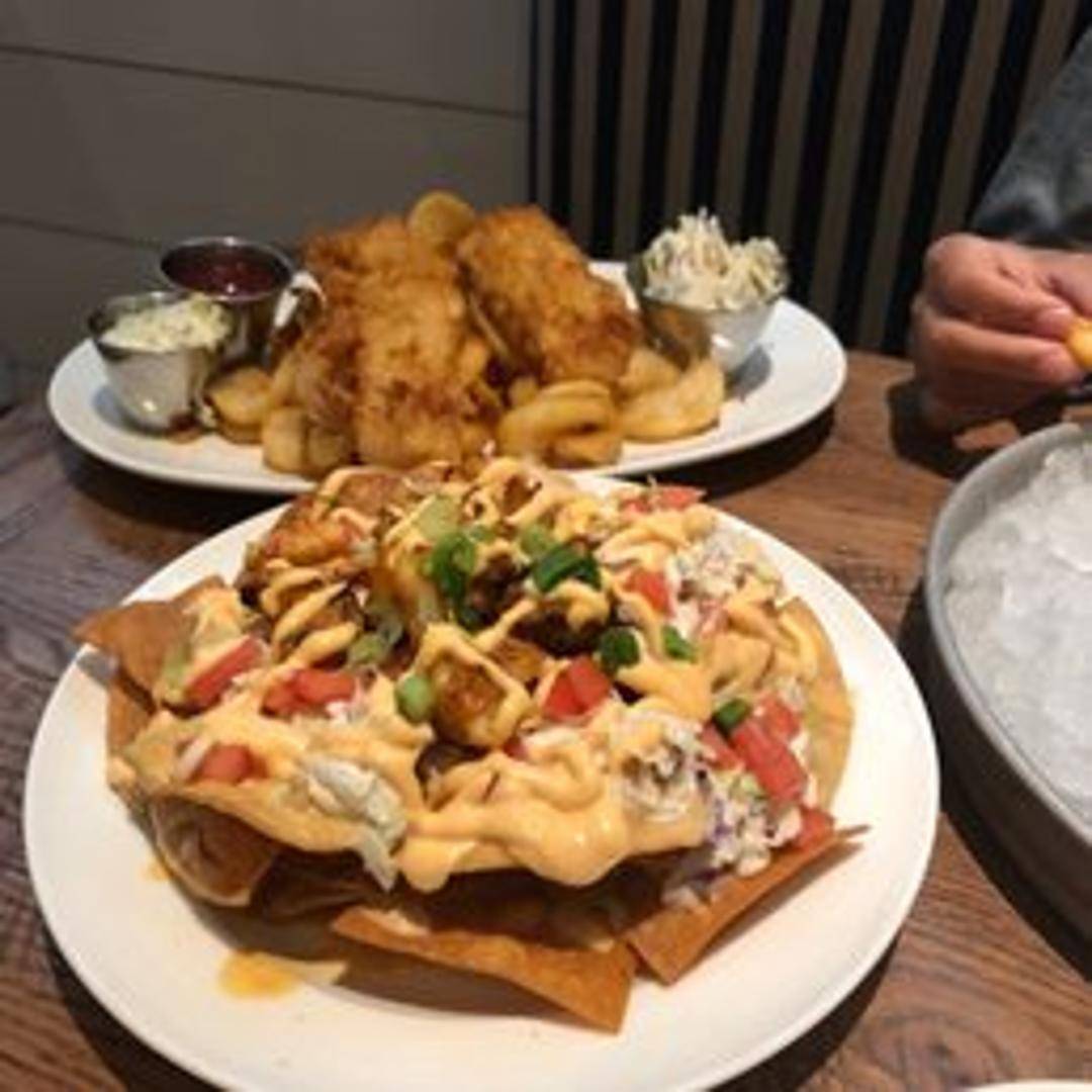 A traditional and hearty classic featuring flaky white fish, typically cod or haddock, encased in a light, crispy beer batter and deep-fried until golden. Served alongside a generous portion of thick-cut, perfectly fried potatoes, often accompanied by a side of creamy tartar sauce and a lemon wedge for a touch of zest.