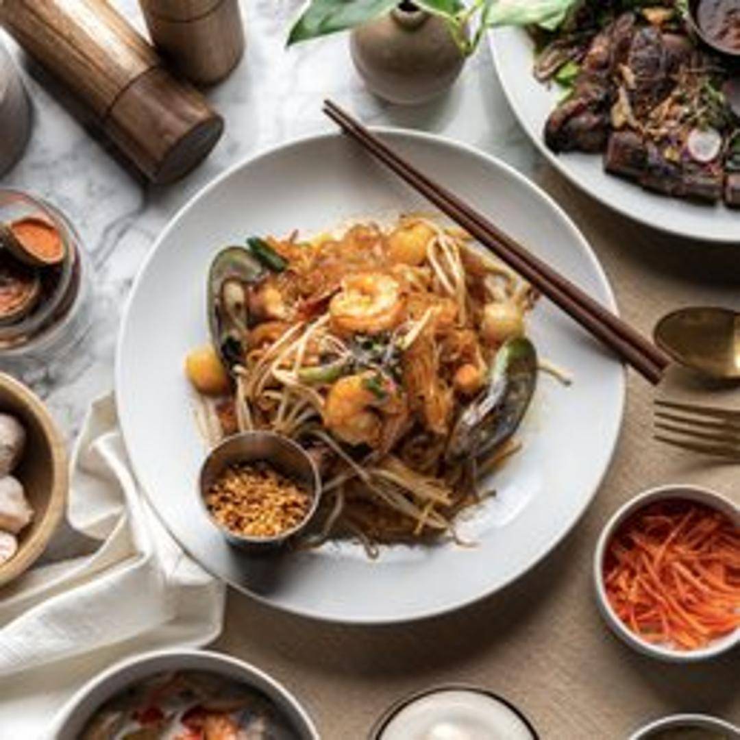 The quintessential Thai noodle dish. Rice noodles stir-fried with egg, bean sprouts, tofu, and your choice of protein in a tangy tamarind sauce, topped with crushed peanuts and lime.