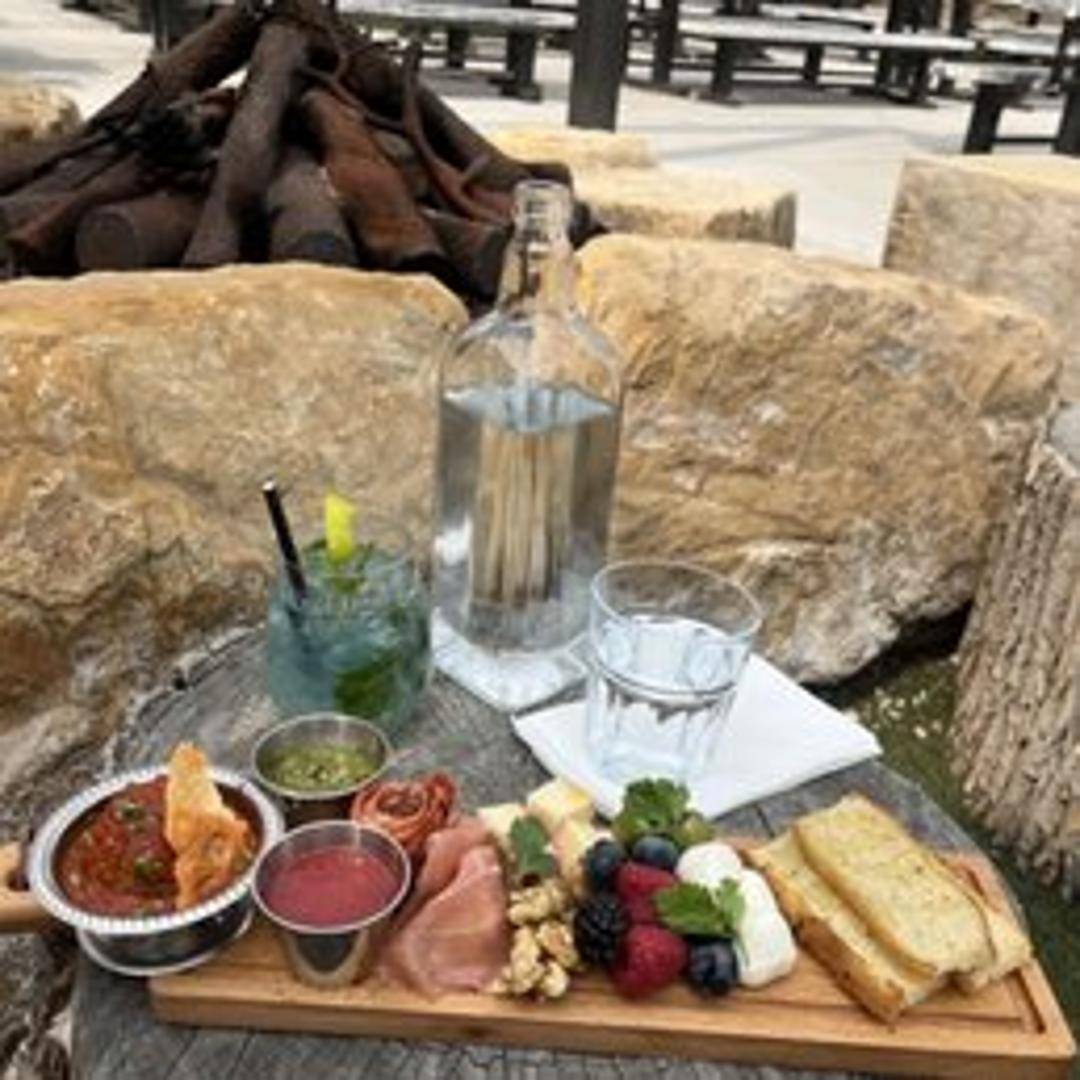 Selection of cured meats, cheeses, olives, and accompaniments.