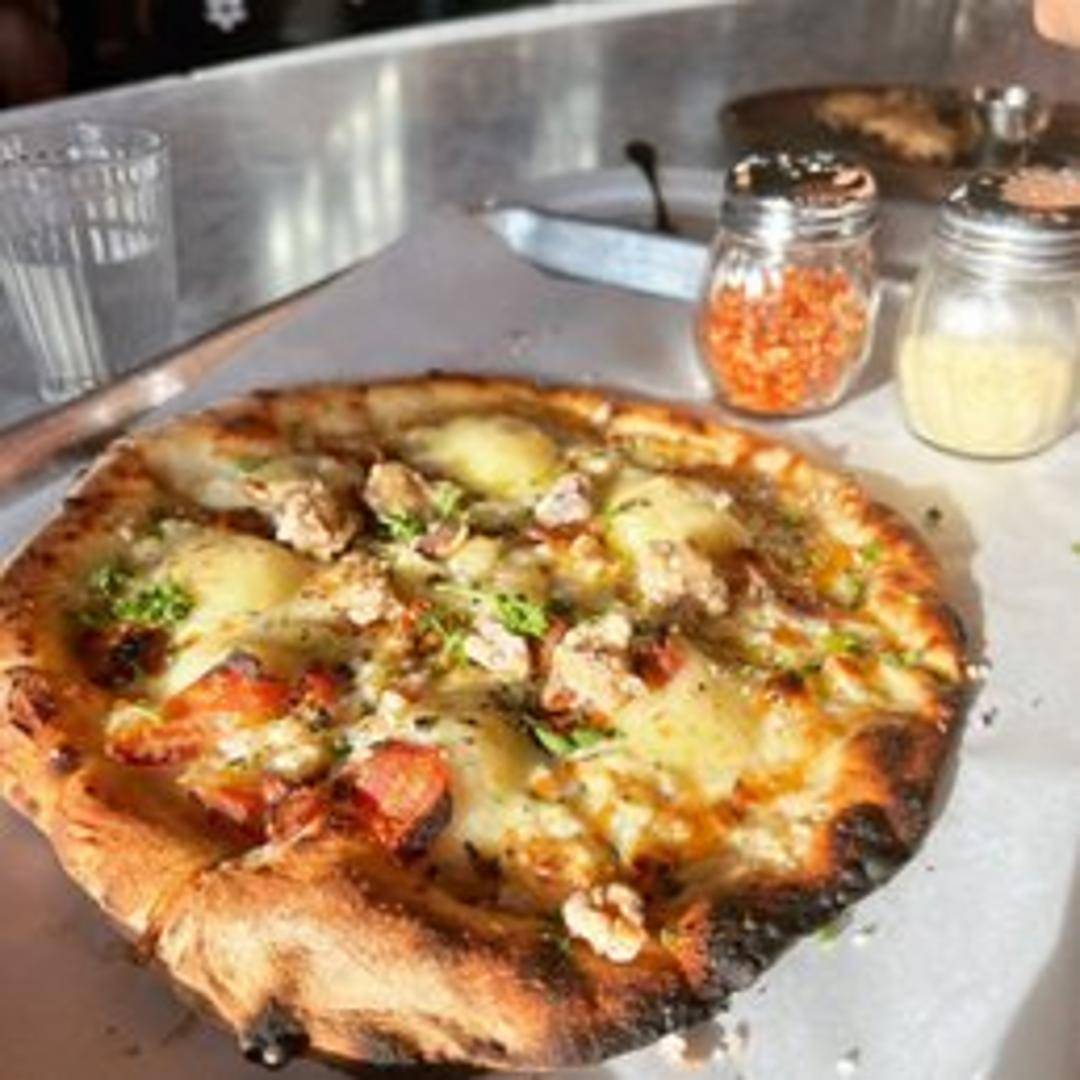A robust pizza featuring Italian sausage, roasted peppers, onions, and a blend of cheeses.